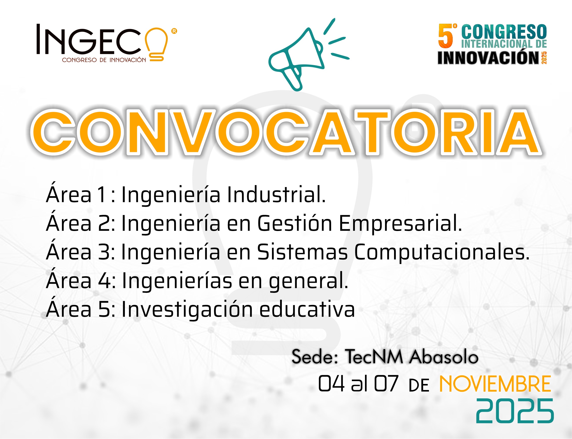 El cual se llevará a cabo del 04 al 07 de noviembre del 2025, teniendo como sede el Tecnológico Nacional de México - Abasolo, en Abasolo, Guanajuato, México. El evento se realizará los días 04 y 05 de noviembre en modalidad virtual, 06 y 07 de noviembre en modalidad presencial.