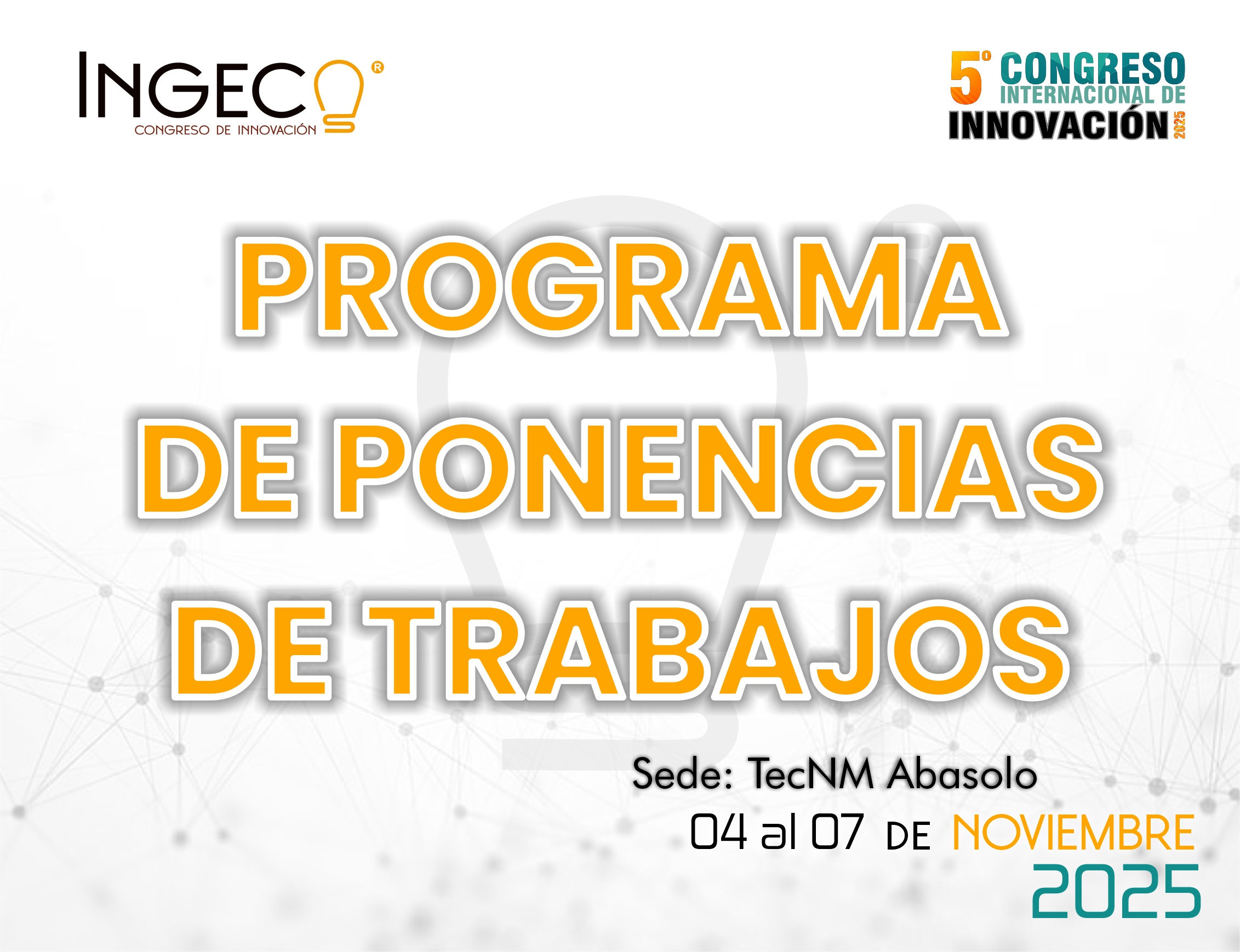 El cual se llevará a cabo del 04 al 07 de noviembre del 2025, teniendo como sede el Tecnológico Nacional de México - Abasolo, en Abasolo, Guanajuato, México. El evento se realizará los días 04 y 05 de noviembre en modalidad virtual, 06 y 07 de noviembre en modalidad presencial.